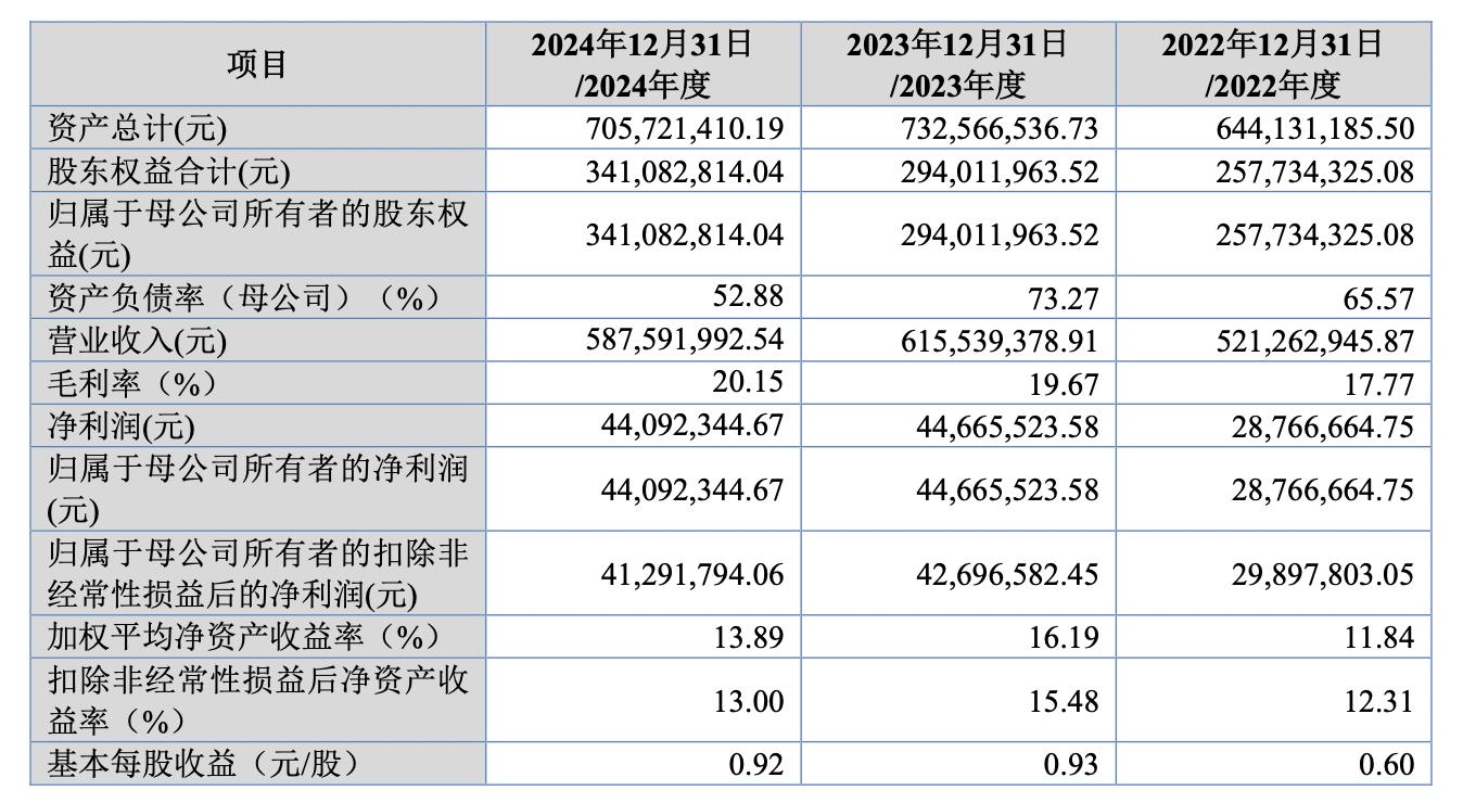 据招股书,2022年-2024年,尚研科技实现营收分别为5.21亿元、6.16亿元、5.88亿元;归母净利润分别为2876.67万元、4466.55万元、4409.23万元。