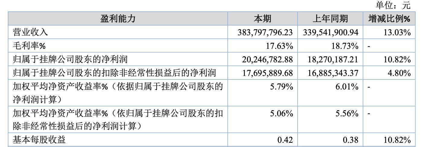 2025上半年,公司实现营收为3.84亿元,同比增长13.03%;归母净利润为2024.68万元,同比增长10.82%。