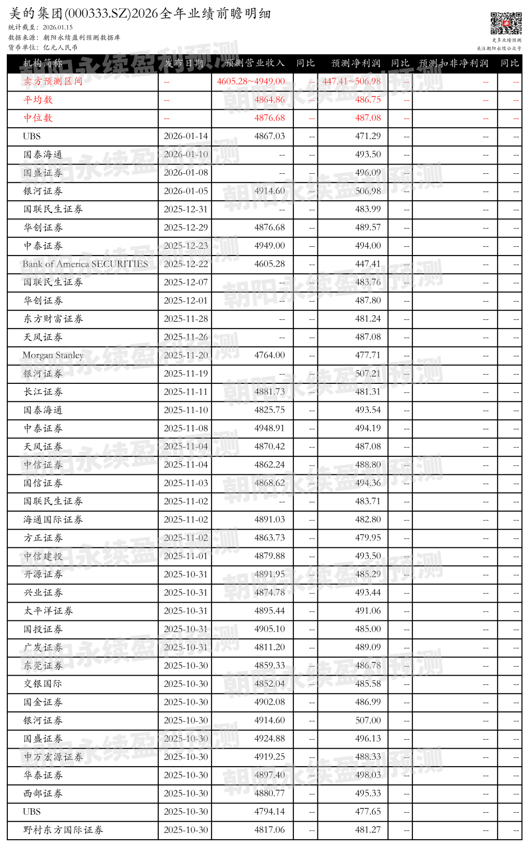 (注:本文内容基于朝阳永续AI技术生成,文中相关盈利预测数据均来自朝阳永续盈利预测数据库)
