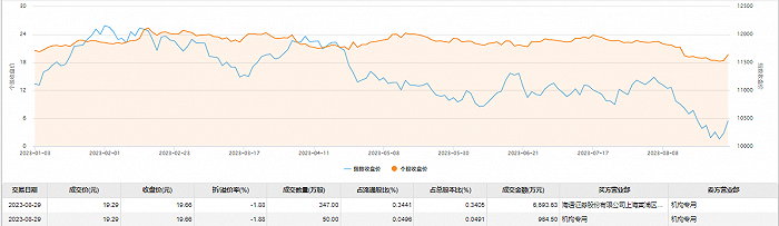 许继电气8月29日大宗交易成交397万股,成交额7658.13万元,占当日总成交额的17.09%,成交价19.29元,较市场收盘价19.66元折价1.88%。