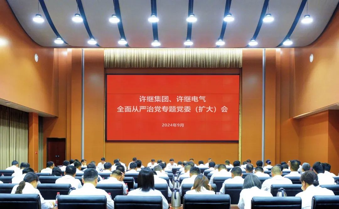 9月9日,许继集团、许继电气召开全面从严治党专题党委(扩大)会议,深入学习贯彻习近平总书记重要指示批示精神,专题研究全面从严治党工作。党委书记、董事长李俊涛主持会议并讲话。党委副书记、董事史洪杰代表党委报告全面从严治党主体责任履行情况,党委委员、纪委书记丁庚鑫代表纪委报告全面从严治党监督责任履行情况。许继电气党委副书记、总经理许涛,许继集团党委副书记、总经理韩书谟及其他领导班子成员出席会议,并结合分管领域工作就履行“一岗双责”情况逐一发言。会议发布了《许继集团党委许继电气党委关于全面从严治党加强党员干部作风建设的实施意见》。