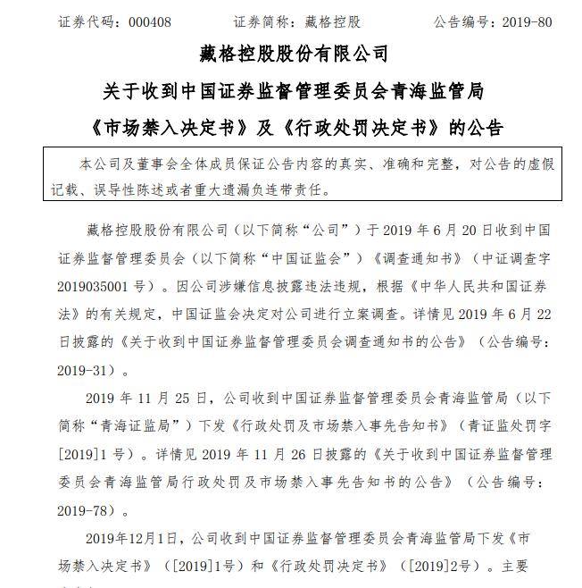 藏格控股(000408)被证监会行政处罚,相关投资者依法享有诉权