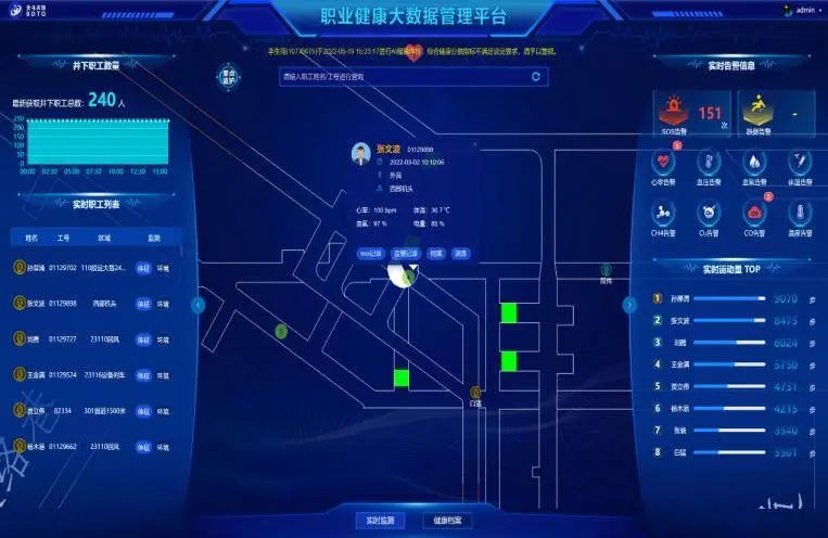 职业健康大数据管理平台由基本信息模块、?数据展?模块、异常报警功能、职业安全卫?档案及报表管理组成,通过配备华为终端商用穿戴设备打造的矿用本安型手表,对职?体征数据实时观测,建?个?体征健康电?档案,统筹管理员工健康状态,帮助企业破解难题。