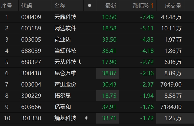 多模态AI概念表现疲软 云鼎科技跌超7%