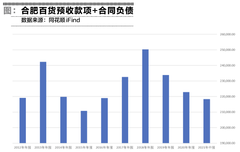 合肥百货半年报资产负债表显示,公司的合同负债高达20.58亿元。这些主要是公司销售出去的购物卡。