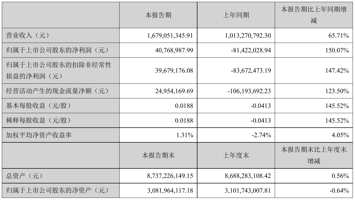 8月13日,吉林化纤(000420)近日发布2021年半年度报告,报告期内营业收入1,679,051,345.91元,同比增加65.71%;净利40,768,987.99元,同比扭亏为盈。