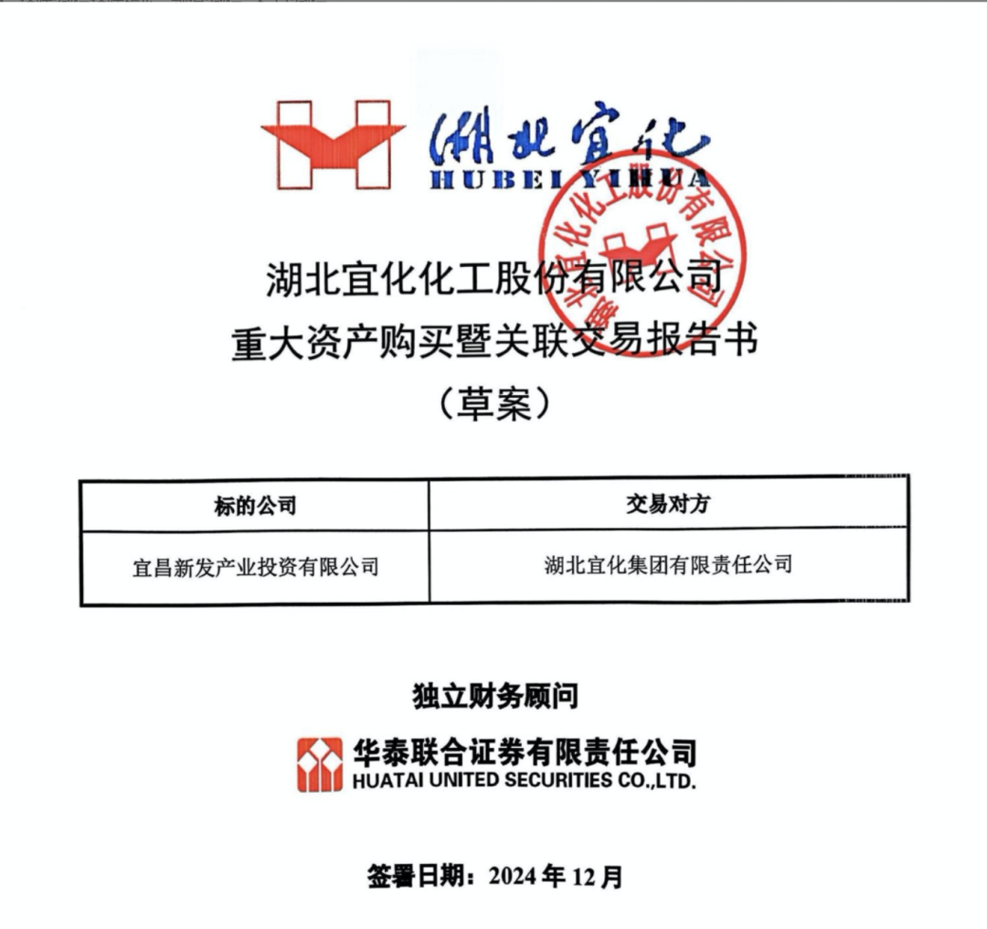 12月11日晚,湖北宜化公告称,拟以支付现金方式受让控股股东宜化集团持有的宜昌新发产业投资有限公司(以下简称“宜昌新发投”)100%股权,交易价格为32.08亿元。该项交易构成关联交易及重大资产重组。