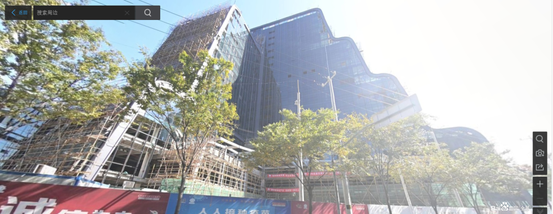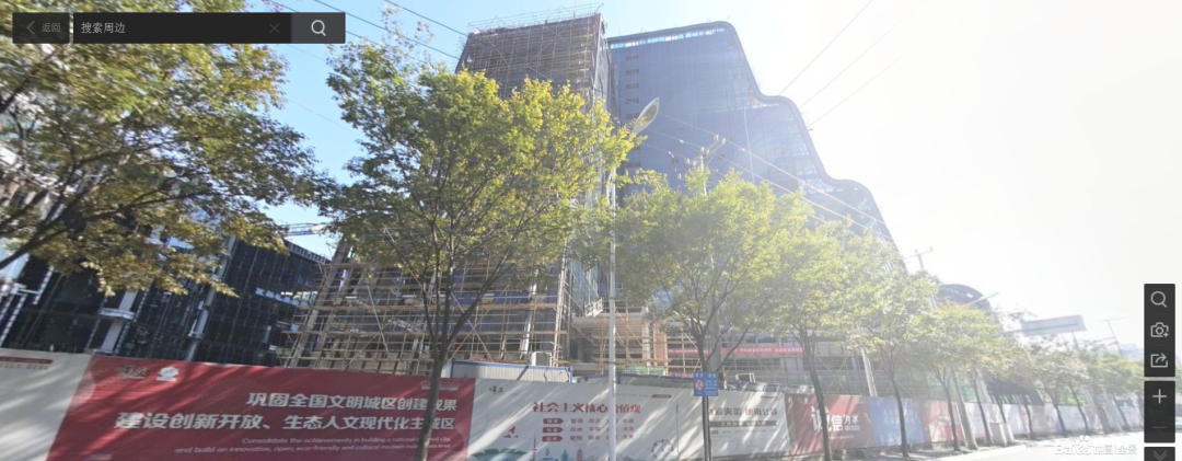 据地图软件拍摄于2022年10月的街景信息,截至2022年10月,位于21A地块的晨鸣文化项目建筑外墙的脚手架仍未拆除,且部分幕墙仍缺损。
