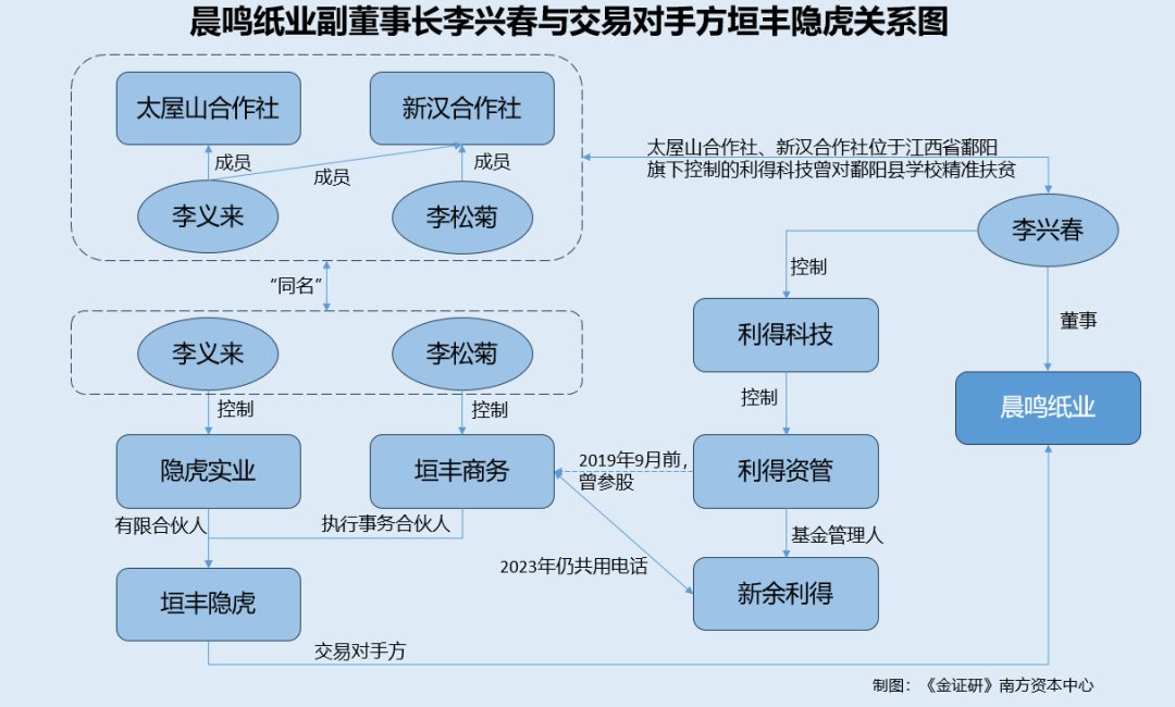 巧合的是,李兴春控制的企业曾参股垣丰隐虎的原执行事务合伙人垣丰商务,退股后仍与垣丰商务共用联系方式。且彼时股权受让方的有限合伙人隐虎实业的实控人与历史股东,跟鄱阳县扶贫基地的经营主体太屋山合作社成员同名,且太屋山合作社的成员还与新汉合作社成员同名。综上所述,晨鸣纸业将子公司出售的股权交易对手方垣丰隐虎,与晨鸣纸业副董事长李兴春的关系待解。