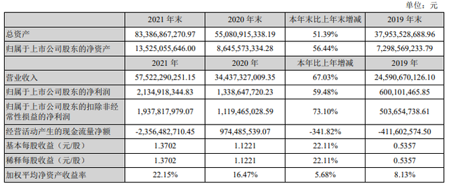 山东路桥4月26日发布2021年年报,公司实现营业收入575.22亿元,实现归属于母公司所有者的净利润21.35亿元,分别同比增长67.03%和59.48%。基本每股收益为1.37元。