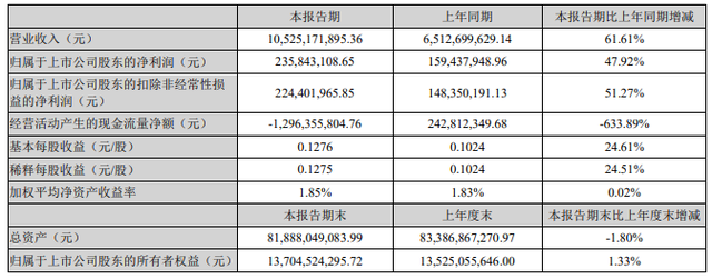 另外,今年一季度,山东路桥业绩继续高速增长。公司近日发布的一季度报告显示,报告期内公司实现营业收入105.25亿元,同比增长61.61%;归属于上市公司股东的净利润2.36亿元,同比增长47.92%。