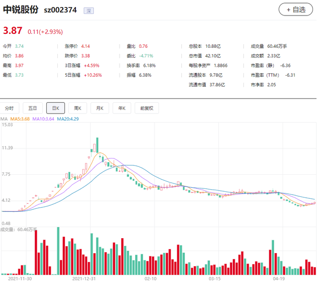 5月9日,“瓶盖第一股”中锐股份涨2.93%,股价报收3.87元,总市值42.10亿元。根据数据,中锐股份今年以来跌幅为64.50%,成为山东274家上市公司中跌幅最大的公司。