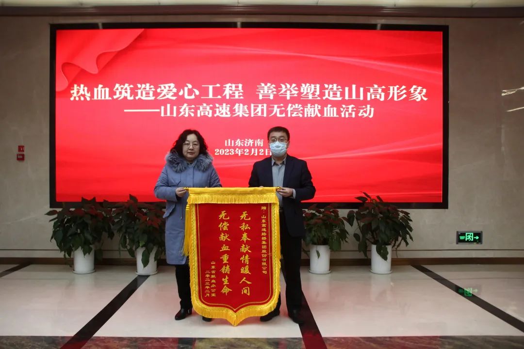 活动中,山东省献血办公室王淑荣主任送来锦旗,对公司大力支持山东省无偿献血事业表示感谢。此次活动充分践行了山东路桥人的初心使命,用爱心为健康助力,用热血为生命加油,彰显了国有企业的责任担当。