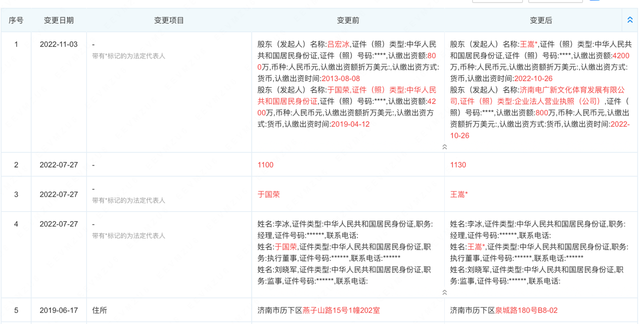 而截至目前,上述三名股东已全部退出,王嵩和济南电广新文化体育发展有限公司目前分别持股84%和16%。
