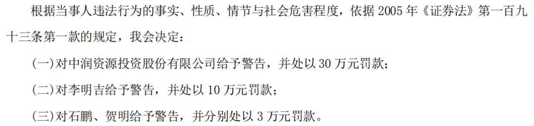 据此,证监会决定对中润资源及时任董事长、时任董事兼财务总监、时任董事会秘书等相关责任人员给予警告并处以罚款。