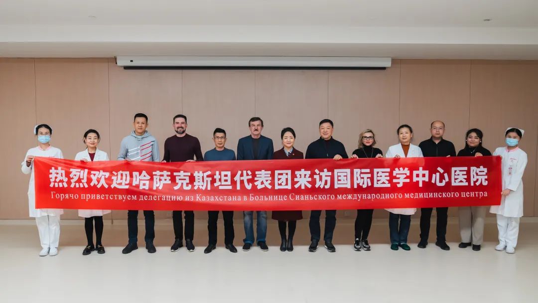 1月19日下午,哈萨克斯坦国际一体化基金会副主席、哈萨克斯坦环球集团公司总经理马特维耶夫·维克多、旅游部门经理奈斯特洛娃·奥克桑拿、商业部门副经理马特维耶夫·叶甫盖尼、哈萨克斯坦国际一体化基金会西安代表处总代表、陕西陕哈集团有限公司总经理何诚、哈萨克斯坦国际一体化基金会西安代表处副总代表、陕西陕哈集团有限公司副总经理韩万初、哈萨克斯坦国际一体化基金会西安代表处经理、陕西陕哈集团有限公司经理赵欢等一行7人来西安国际医学中心医院参观交流。