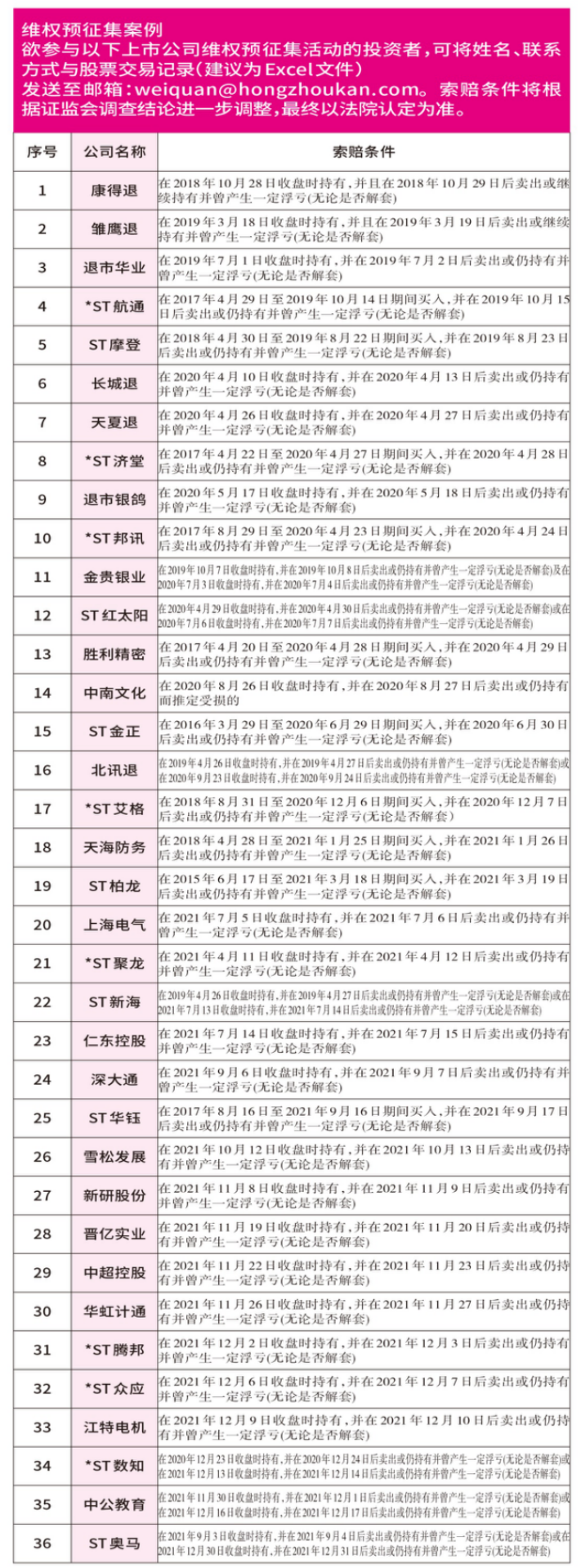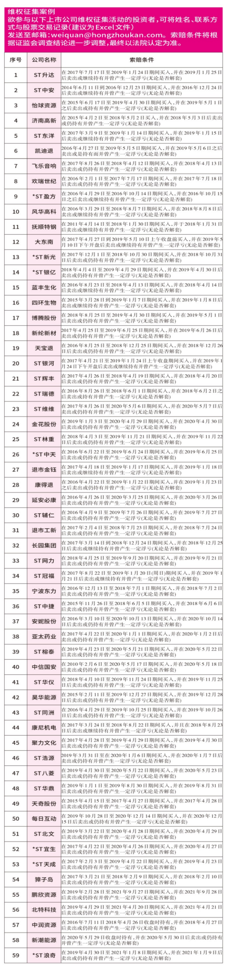 根据相关司法解释,如果投资者于2019年4月30日至2021年1月8日期间买入*ST浪奇,并在2021年1月9日后卖出或仍持有并曾产生一定浮亏(无论是否解套)均可发起索赔,您只需将姓名、联系电话与交易记录(建议为Excel文件)发送到weiquan@hongzhoukan.com的邮箱,参与由《证券市场红周刊》“民间维权”栏目组织的索赔征集活动,以维护自身合法权益。广大投资者在获得赔偿前无需支付任何律师费用。