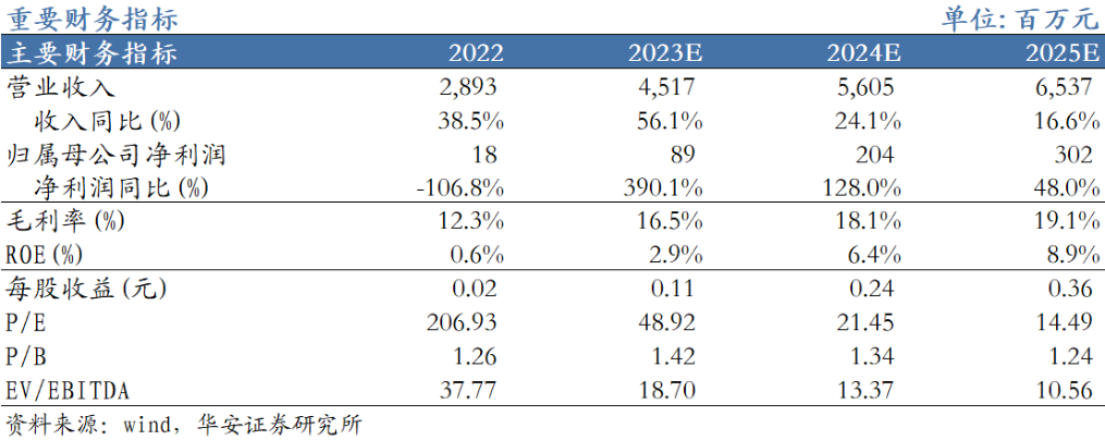 考虑到食品农产品冷链与工业制冷设备发展势头较好,其他新业务布局完善,我们看好公司未来长期发展。但短期来看,由于松洋制冷、松洋压缩机等子公司并表后,费用率水平略高于我们前期假设,我们下修盈利预测为:2023-2025年预测营业收入为45.17/56.05/65.37亿元(前值为47.54/58.30/69.29亿元);2023-2025年预测归母净利润分别为0.89/2.04/3.02亿元(前值为1.10/2.41/3.49亿元);2023-2025年对应的EPS为0.11/0.24/0.36元(前值为0.13/0.29/0.41元)。公司当前股价对应的PE为49/21/14倍。维持“买入”投资评级。