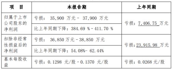 7月14日,华映科技发布业绩预告,预计归属于上市公司股东的净亏损3.59亿元-3.79亿元,比上年同期下降384.69 %–411.70 %;扣除非经常性损益后的净亏损3.69亿元-3.89亿元,比上年同期下降54.08%- 62.44%;基本每股亏损0.1298元/股–0.1370元/股。