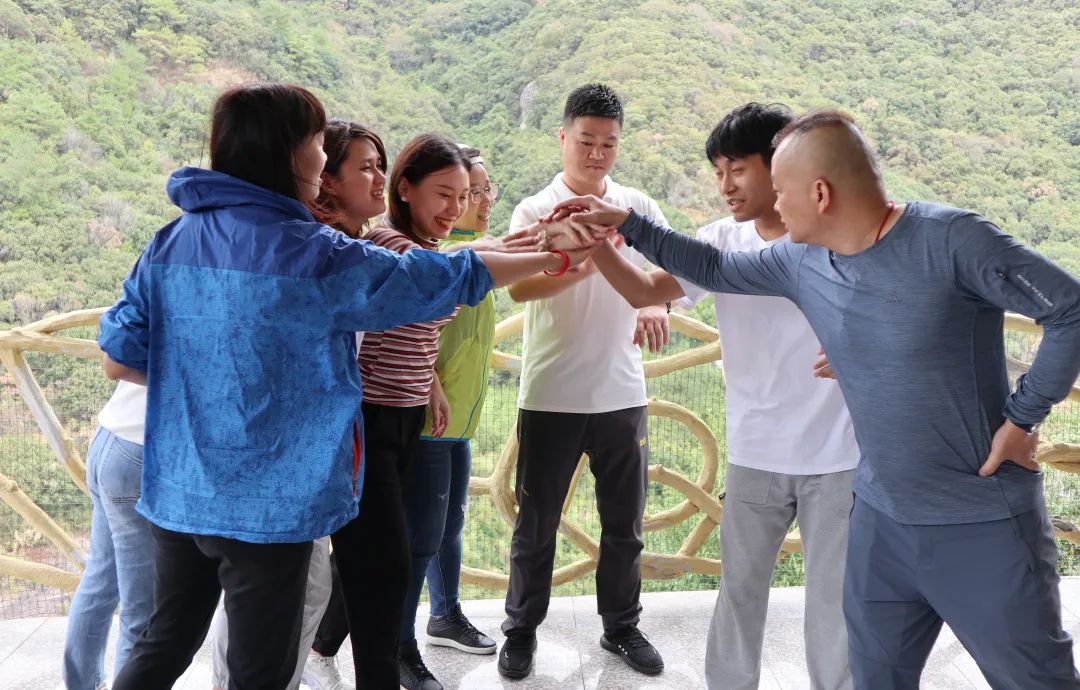 在晴空万里、秋日暖阳中,全体党员探险悬索桥、野外徒步登山、攀爬高空玻璃栈道,在党旗的引领下,纷纷登顶、红旗挥舞、胜利会师,用团结奋进、攻坚克难、勇攀高峰的拼搏精神展示奋进新时代、筑梦新征程的精神风貌!在徒步登山途中,大家捡拾红花绿叶进行二十大主题创意拼图,诠释对党的忠诚和热爱,歌颂伟大祖国的繁荣富强。