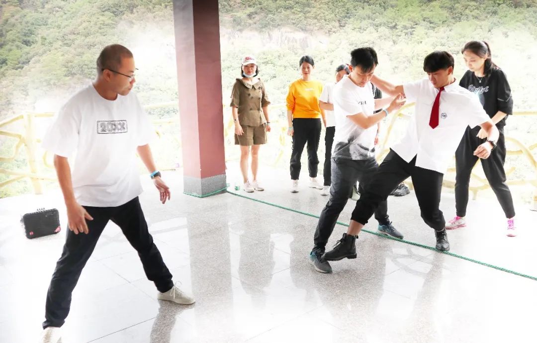 三人六足作为桥墩并排站立在地面,队员踩着足面渡过“金沙江”到达对岸。抉择、掩护、牺牲……在游戏中,全体党员充分感受革命先烈坚定的革命理想和信念,不怕任何艰难险阻,患难与共艰苦奋斗的长征精神,进一步激励全体党员树立奋进之志、担当作为之责、锻造干事之能。