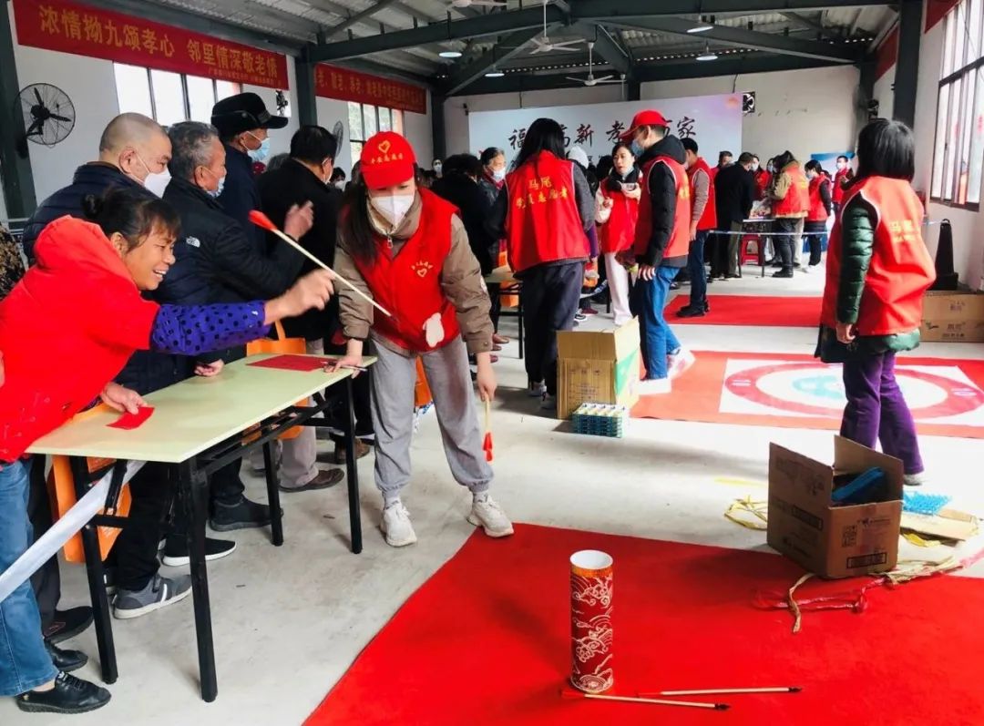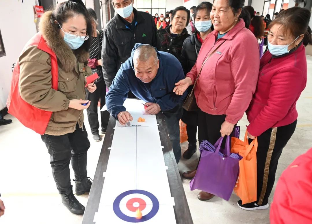 “和谐家园”社区前,志愿者们为老人们送上香甜的拗九粥和寓意“蛋”愿平安的平安蛋,手把手教老人玩桌面冰壶、投壶、丢沙袋等游戏,以实际行动为社区老人献上关怀爱心,在初春乍暖还寒时,让老人们感受到党的温暖。