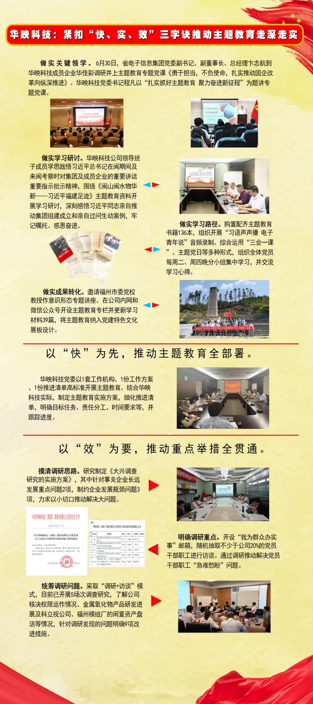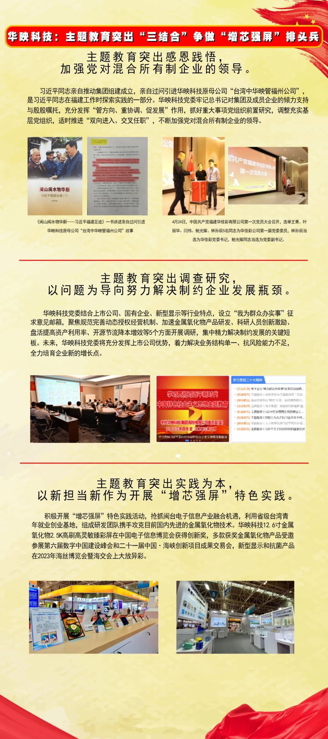为进一步推动学习贯彻习近平新时代中国特色社会主义思想主题教育,中共华映科技(集团)股份有限公司委员会设计主题教育党建特色文化展板,推动主题教育走深走实。
