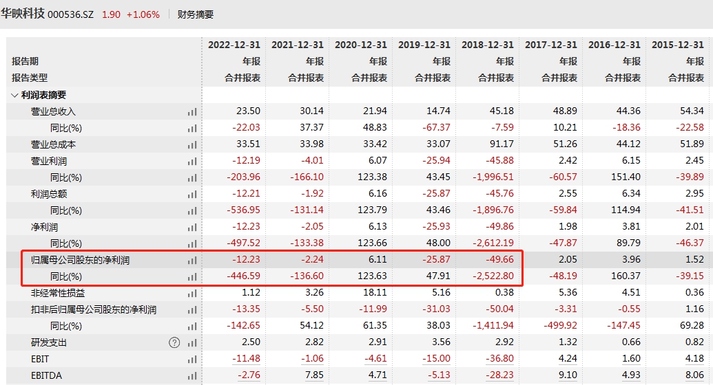 资料显示,华映科技主要从事显示面板、显示模组的研发、生产及销售。近年来公司业绩持续承压,2018年至2022年的5年间,仅2020年实现盈利,2018年亏损额最大,为49.66亿元。