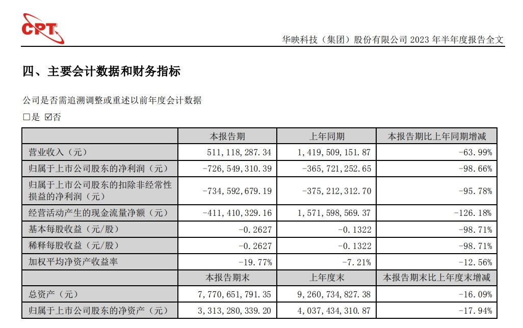 华映科技2023年半年度报告截图,下同