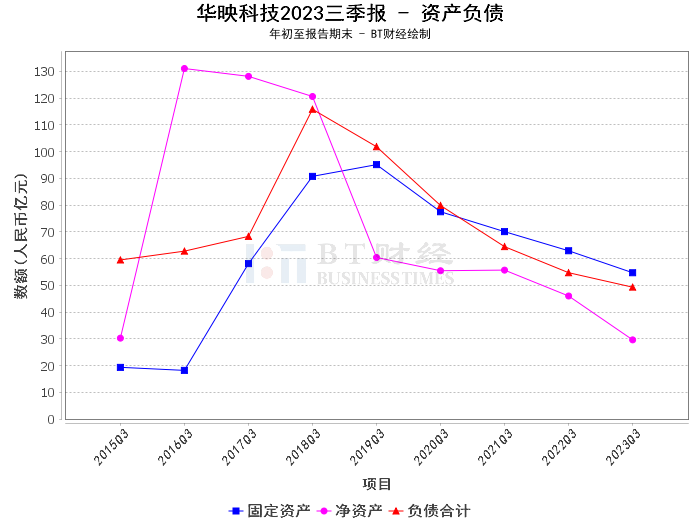 从财报数据来看,华映科技2023年三季度的资产总计为78.91亿元,相比上年度末的92.61亿元有所减少。负债合计为49.3亿元,相比上年度末的52.01亿元也有所下降。净资产为29.61亿元,相比上年度末的40.59亿元减少了近11亿元。资产负债率为62.48%,相比上年度末的56.17%有所上升,这可能与公司偿还债务有关。