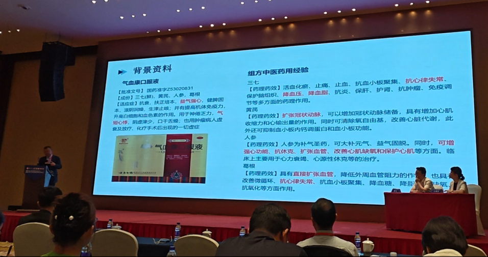 北京大学首钢医院血管医学中心主任王宏宇教授汇报了气血康口服液改善血管健康的临床试验结果,心血管疾病的发病基础是血管功能的异常,血管健康问题已经成为影响人民生活质量和健康的重要因素,中医药在心血管疾病的预防、治疗和康复方面具有不容忽视的作用和潜力。在“中国数字心脏和血管健康”研究的大背景下,北京大学和云南白药联合启动了国内首个针对中药改善血管健康有效性和安全性的临床研究。研究团队通过严谨的临床试验,准确地检测了治疗前后的血管相关指标,获得109例有效数据,结果显示血管内皮功能(血管指数-RHI)用药后较用药前改善显著(p 0.001),中医症候群积分用药后显著下降(p 0.001),胸痛,胸闷,心悸以及气短等中医症状显著改善(p 0.001);对血压也有显著的改善作用(p 0.001),临床过程中未发生不良反应,安全性良好。这一发现不仅为心血管疾病患者提供了新的治疗选择,也为预防心血管疾病、提高人们生活质量提供了新的思路。之后,与会专家也对心血管相关研究进行了探讨,交流了最新的研究进展。