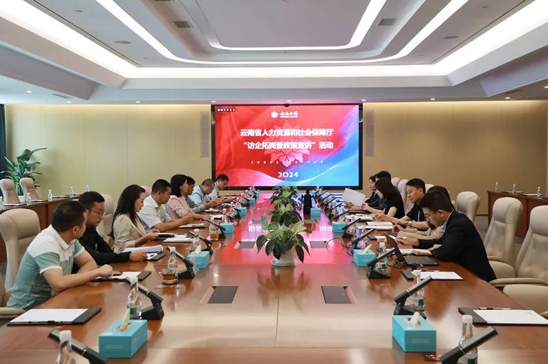 当天,省人力资源和社会保障厅开展了“访企拓岗暨政策宣讲”活动,省、市人社部门相关负责同志与云南白药集团就高层次人才培养及引进等相关政策进行深入交流,针对企业提出的问题现场指导并提出意见建议,有效提升人社政策知晓度,助力企业纾困解难。