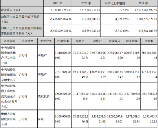 按中天金融对2021年业绩修正说明表述,皆因中融人寿受房地产等影响,造成其资产端业务收益具有较大不确定性。