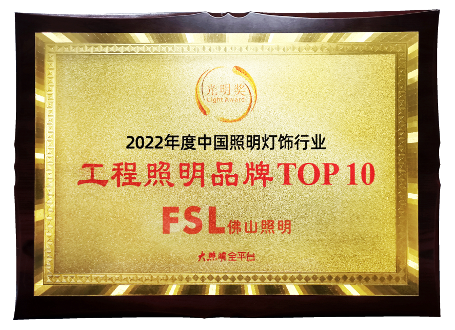 荣获2022“光明奖”年度品牌TOP 10 、年度工程照明品牌TOP 10、年度智能照明品牌TOP 10等荣誉,是行业对佛山照明品牌实力的肯定和认可,同时也是鞭策公司前进的动力,佛山照明将继续强化创新驱动,以客户为中心,以服务树信誉,用光传递品牌价值,为中国照明灯饰行业发展贡献企业力量。