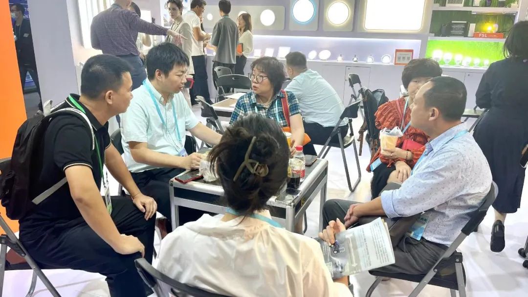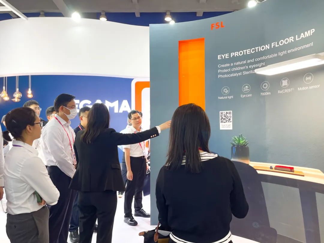 展会现场,佛山照明在展位门头显眼位置新增“中华老字号”logo,以更好地展示企业新身份、新面貌、新气象,同时围绕展会“先进制造”主题,重点展出立式护眼灯、太阳能投光灯等拳头产品,吸引了众多来自南美、中东、东南亚、非洲等地区客商前来参观了解、洽谈业务。
