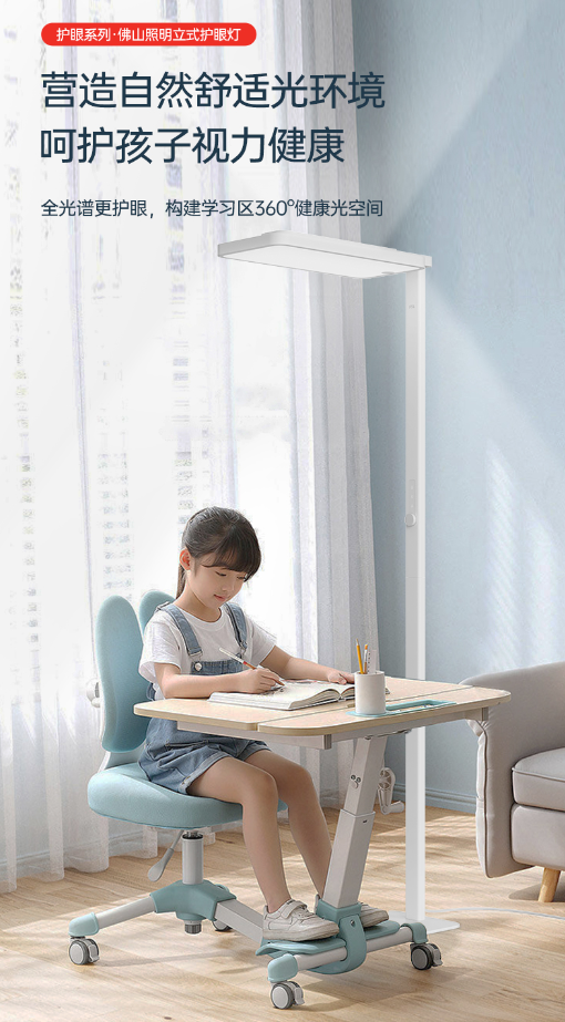 其中,佛山照明立式护眼灯凭借健康护眼、智能便捷等亮眼特色,深受现场客商关注与青睐。该立式护眼灯以专业光学设计模仿太阳光谱,采用防频闪驱动,芯片动态调压调频,在最大程度还原阳光下真实色彩的同时,可减低用眼疲劳,豁免蓝光伤害,以自然舒适光环境呵护用户视力健康。同时,灯具采用光触媒涂料,可实现全天候全空间抗菌抗病毒,经检测,甲醛去除效率高达86.1%,并长效释放负氧离子,有益提高人体免疫力和抗菌力。此外,灯具搭载微波感应装置,支持移动端、智能音箱远程控制,还预设了3种智能模式,满足学习、休闲等不同场景需求。