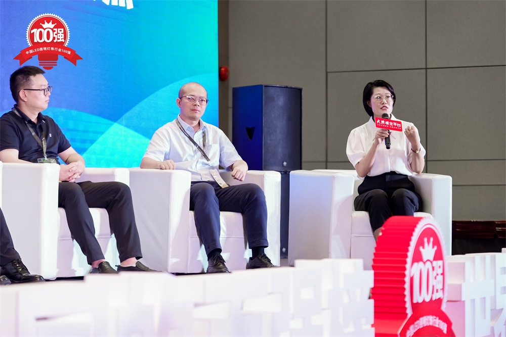 2024大照明“百强榜”暨百强报告发布会上,佛山照明研究院副院长丁文超也受邀亮相百强对话论坛环节,与行业优秀企业代表共同围绕“探索照明行业新的增长点”话题展开探讨交流。她指出,近几十年照明行业经历了两个颠覆性技术的发展:一是LED的性能和光品质水平不断突破,成为主要光源;二是智能技术与照明技术深度融合,促进照明行业和数字时代发展融为一体。当前行业正处于发展过程中的瓶颈期,需要通过推动技术迭代与探索新兴市场,去打破瓶颈、推动发展。