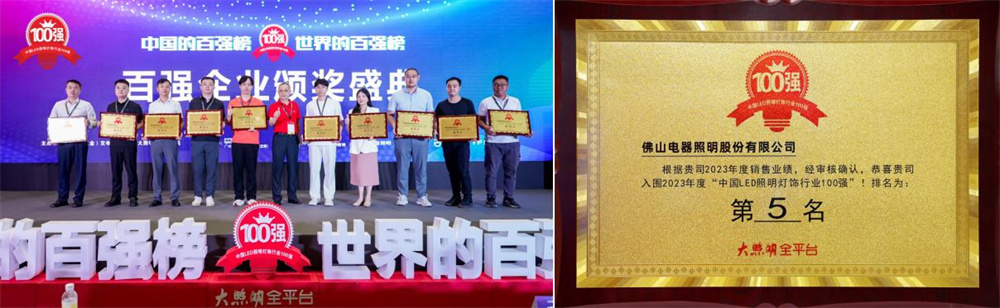 “中国LED照明灯饰行业100强”排行榜(简称“百强榜”)则以“企业全年销售业绩”为重要衡量标准,被誉为“一份真正意义上的中国LED照明灯饰行业权威排名”。在本届“百强榜”评选中,佛山照明凭借90.57亿元的销售业绩光荣上榜,位列榜单第五位。
