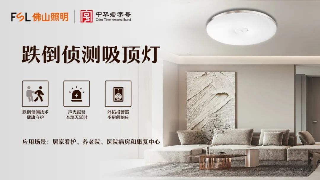 根据《中国老龄化与健康国家评估报告》显示,跌倒已成为老年人失能的主要原因之一。佛山照明为老年人量身定制的“跌倒侦测吸顶灯”,具备跌倒侦测感应功能,如若老人不慎跌倒,可通过灯具本地声光报警,外置蜂鸣器同步报警,快速响应无延时,为老年人的居家安全提供了坚实保障。
