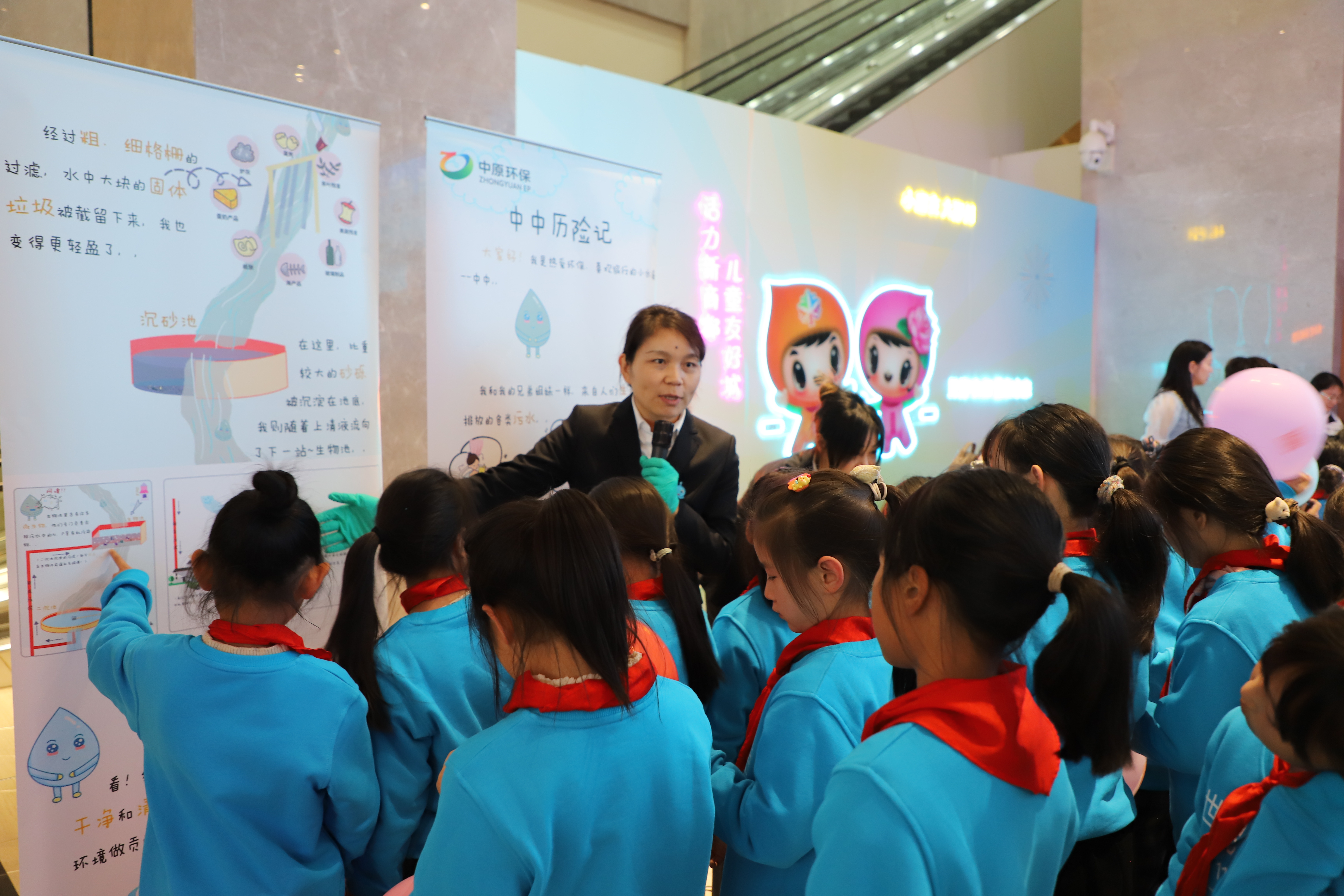 备受喜爱的“水精灵”和“泥娃娃”人偶全程参与本次活动,与小朋友们亲切互动、合影留念,成为本次活动中最受欢迎的“明星”之一。此次活动,不仅生动展示了公司在污水处理领域的专业技术和成果,也在孩子们心中播下了环保的种子,完美诠释了“敢作气候担当点亮儿童未来”的活动主题。这既是一次成功的品牌形象展示,也是一次富有深远意义的企业社会责任实践。