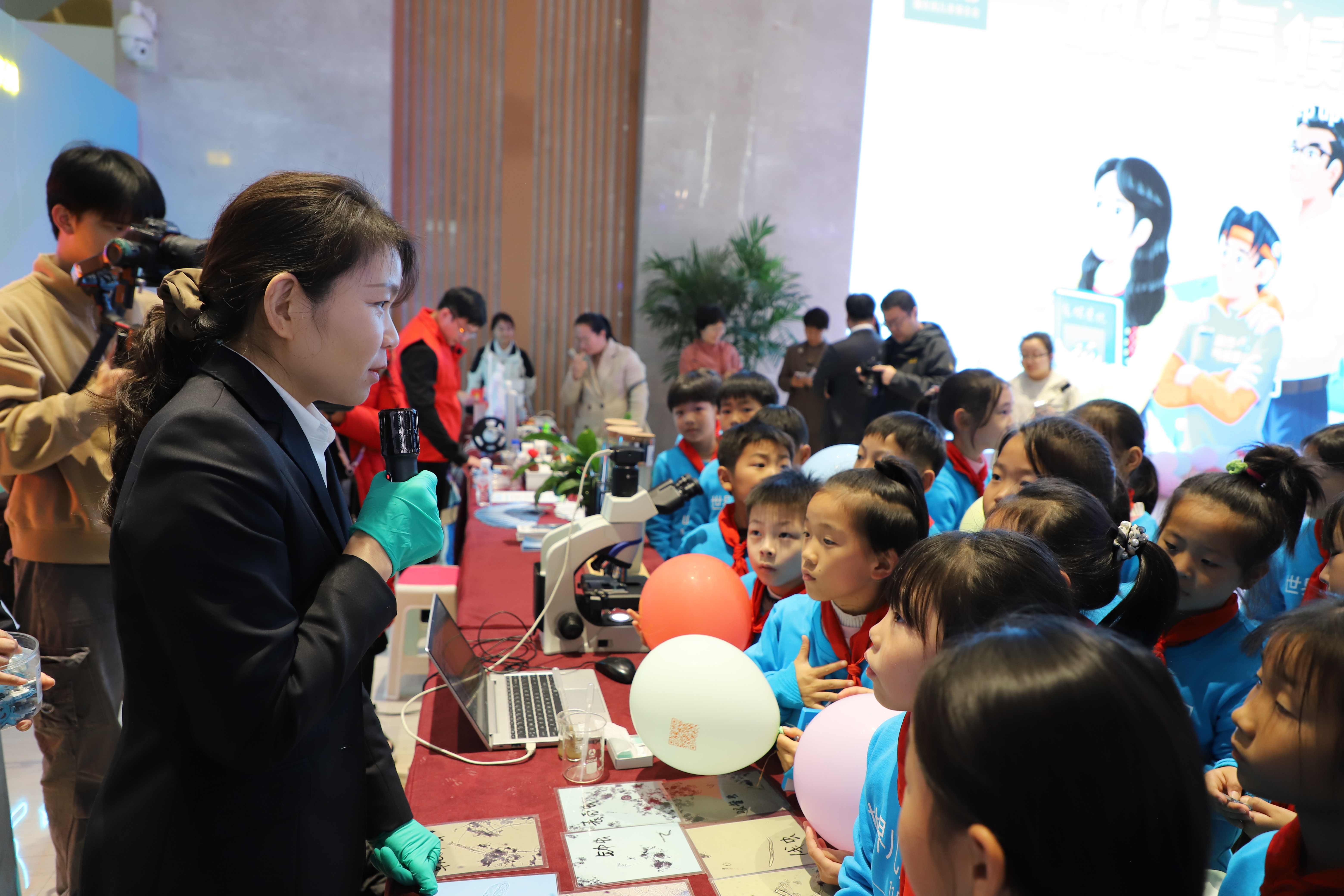 活动现场,中原环保聚焦活动主题,设置了独具特色的环保科普展台。通过趣味性的污水流程展示、直观的进出水及再生水水样和丰富的宣传资料,系统呈现了污水由浊变清的奇妙旅程,吸引了众多观众的目光。孩子们在讲解员的引导下,好奇地透过显微镜,亲眼观察生物池中活跃的“净化小卫士”——微生物,激发了对污水处理的浓厚兴趣。随后的趣味问答环节,孩子们踊跃举手,争相回答刚刚学到的环保知识,在欢声笑语中将活动推向高潮。
