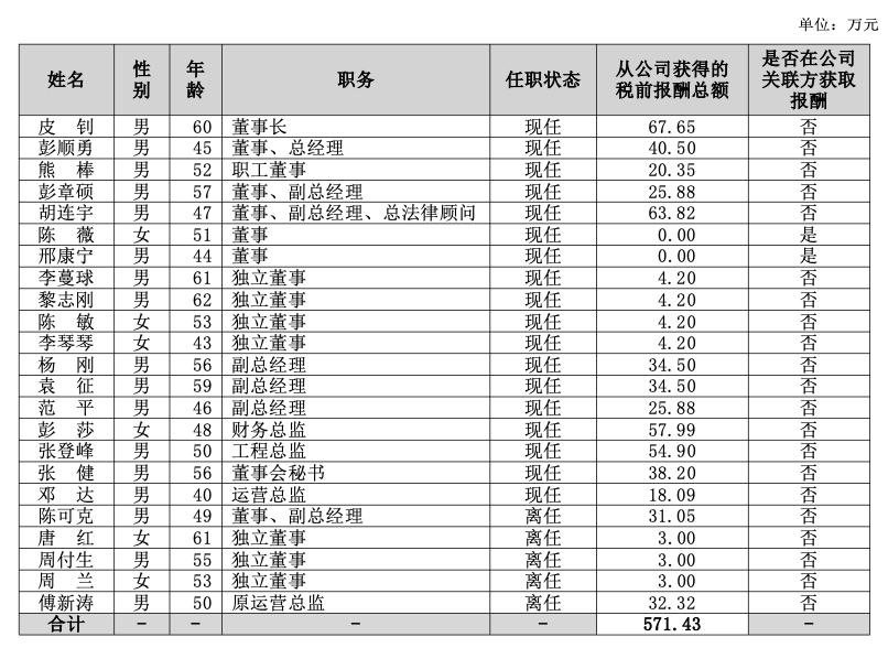 2025年年报显示,公司董事、监事和高级管理人员2025年报酬总额571.43万元,比2024年的473.45万元增长20.69%。董事长皮钊2025年从公司获得的税前报酬总额为67.65万元,比2024年的41万元增长65%。董事、总经理彭顺勇2025年从公司获得的税前报酬总额为40.50万元,董事会秘书张健2025年从公司获得的税前报酬总额为38.20万元,以上人员均未在公司关联方获取报酬。