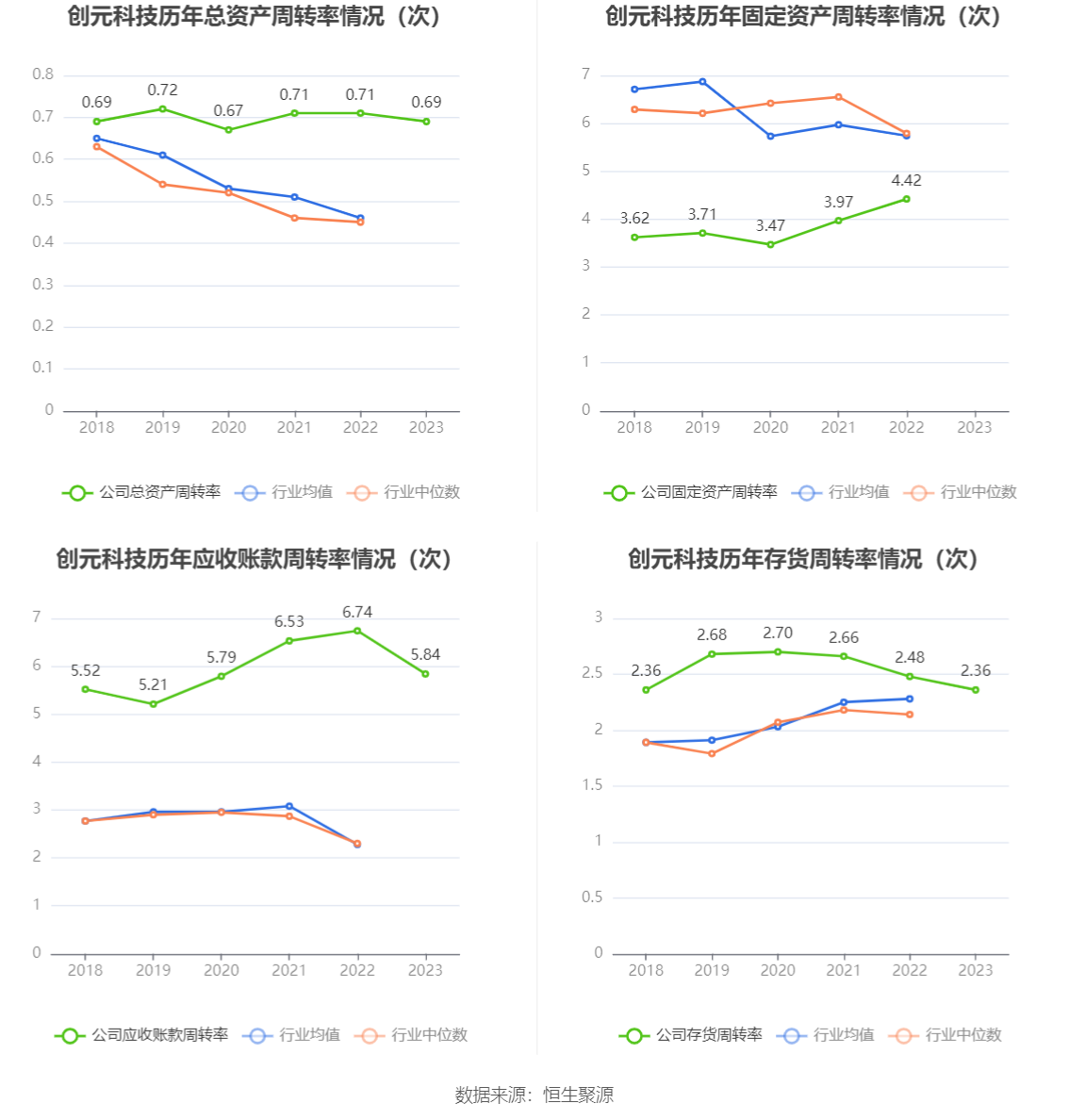 营运能力方面,2023年,公司公司总资产周转率为0.69次,上年同期为0.71次(2022年行业平均值为0.46次,公司位居同行业5/29);公司应收账款周转率、存货周转率分别为5.84次、2.36次。