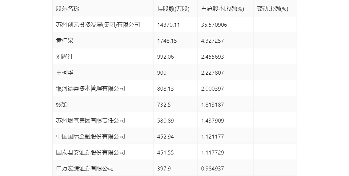 年报显示,2023年年末公司十大流通股东中,新进股东为银河德睿资本管理有限公司,取代了三季度末的苏州创元投资发展(集团)有限公司、招商证券股份有限公司、国泰君安证券股份有限公司、罗伟明。在具体持股比例上,申万宏源证券有限公司持股有所上升,袁仁泉持股有所下降。