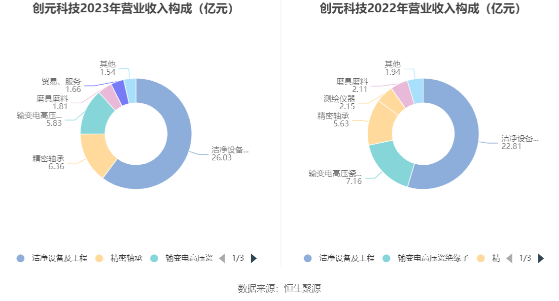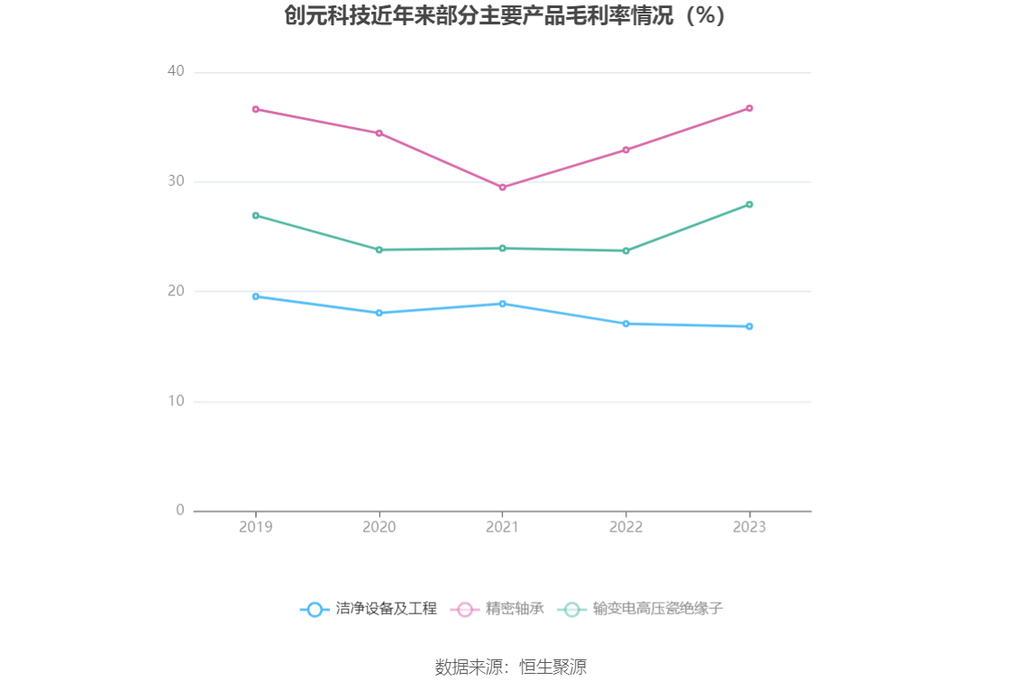 分产品看,洁净设备及工程、精密轴承、输变电高压瓷绝缘子2023年毛利率分别为16.84%、36.72%、27.95%。