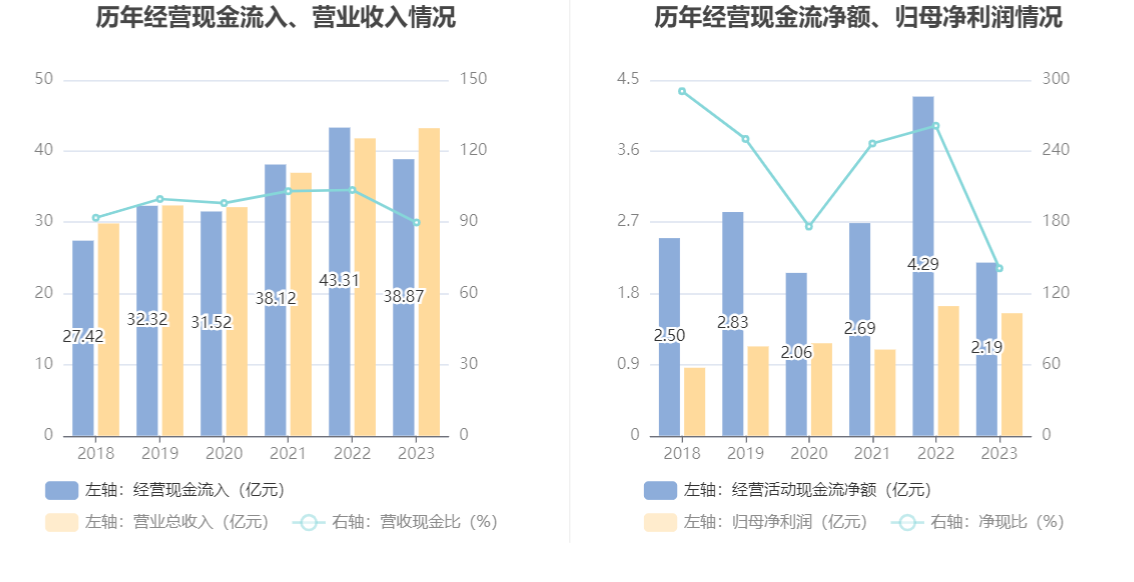 2023年,公司营业收入现金比为89.90%,净现比为141.16%。