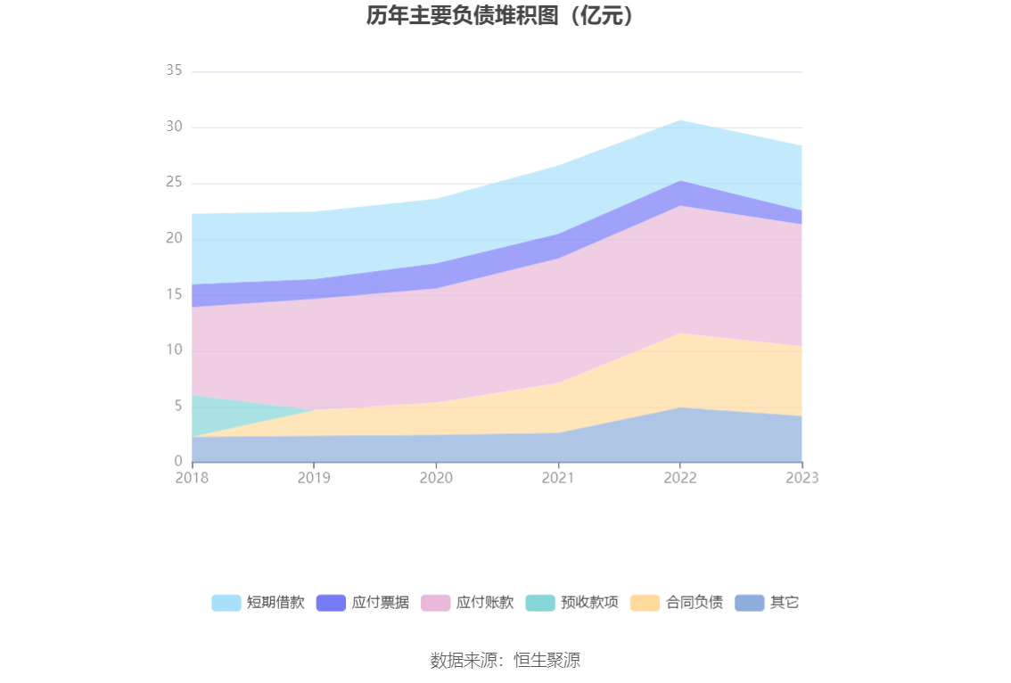 负债重大变化方面,截至2023年年末,公司应付票据较上年末减少44.03%,占公司总资产比重下降1.52个百分点;应付账款较上年末减少4.47%,占公司总资产比重下降0.41个百分点;合同负债较上年末减少6.20%,占公司总资产比重下降0.42个百分点;短期借款较上年末增加6.93%,占公司总资产比重上升0.80个百分点。