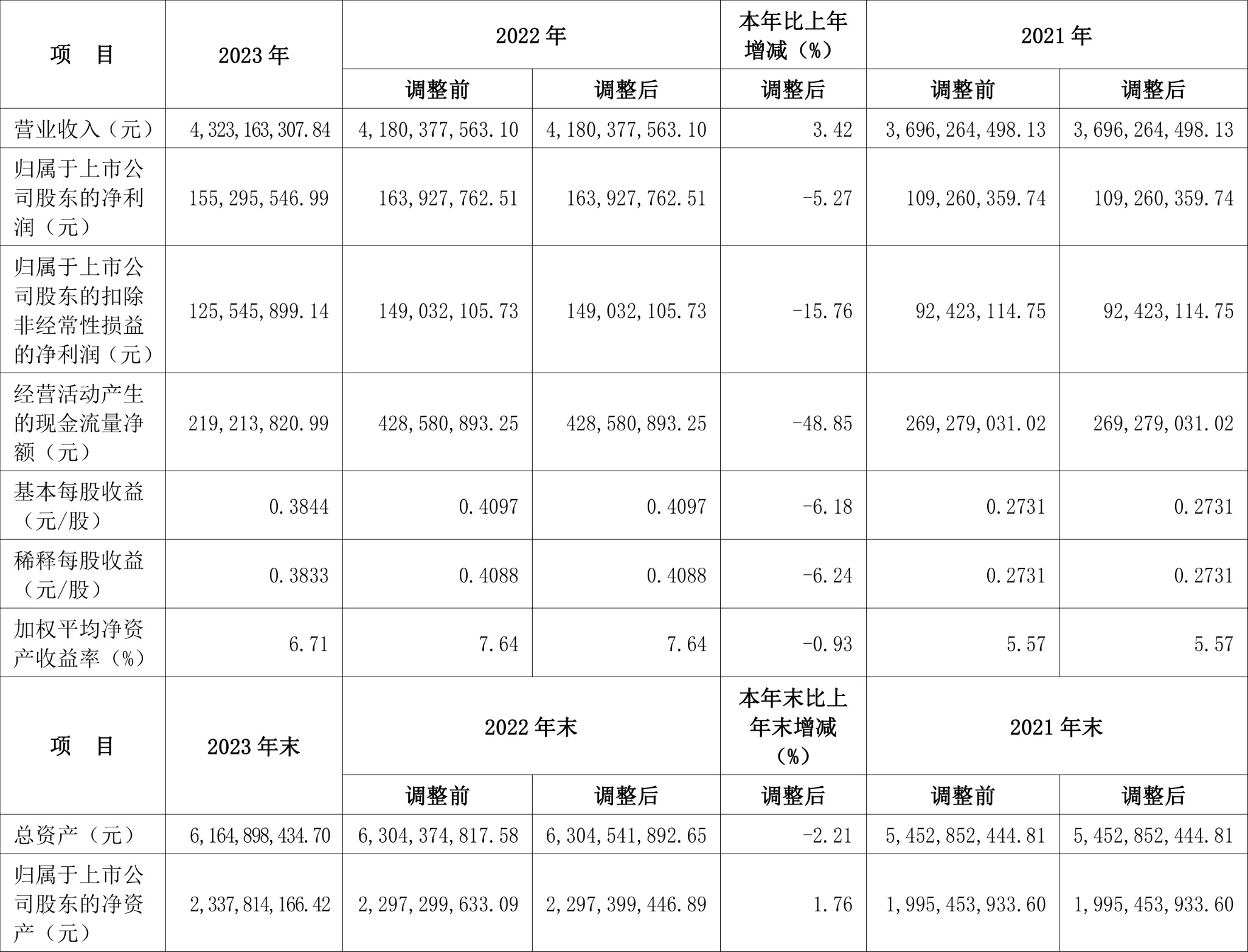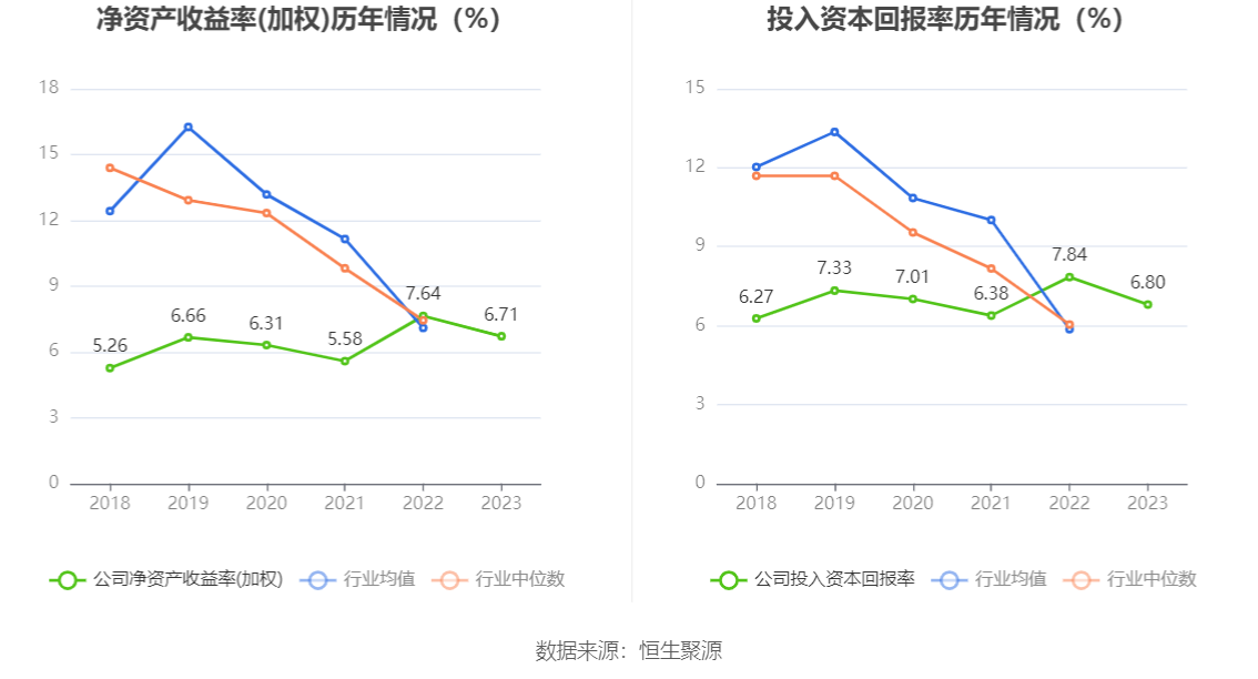 数据显示,2023年公司加权平均净资产收益率为6.71%,较上年同期下降0.93个百分点;公司2023年投入资本回报率为6.80%,较上年同期下降1.04个百分点。