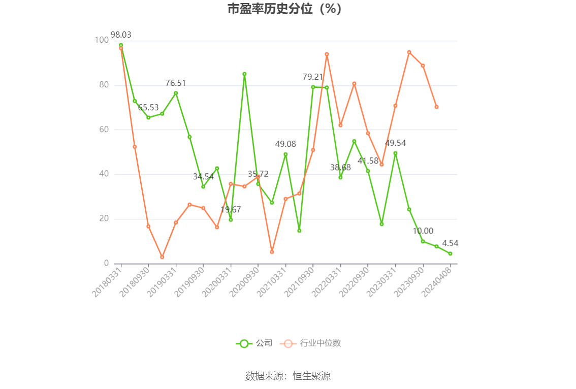 市盈率为负时,不显示当期分位数,会导致折线图中断。