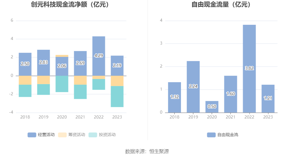 进一步统计发现,2023年公司自由现金流为1.21亿元,相比上年同期下降68.30%。